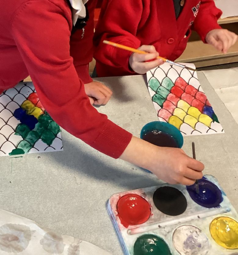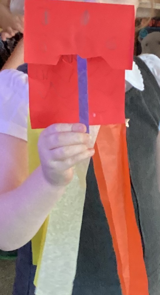 We loved finding out about dragons. We all created scales to make a big class dragon. We made our own dragon kites too.