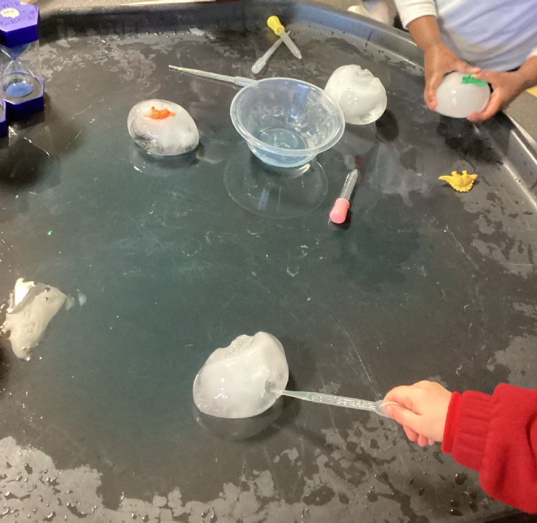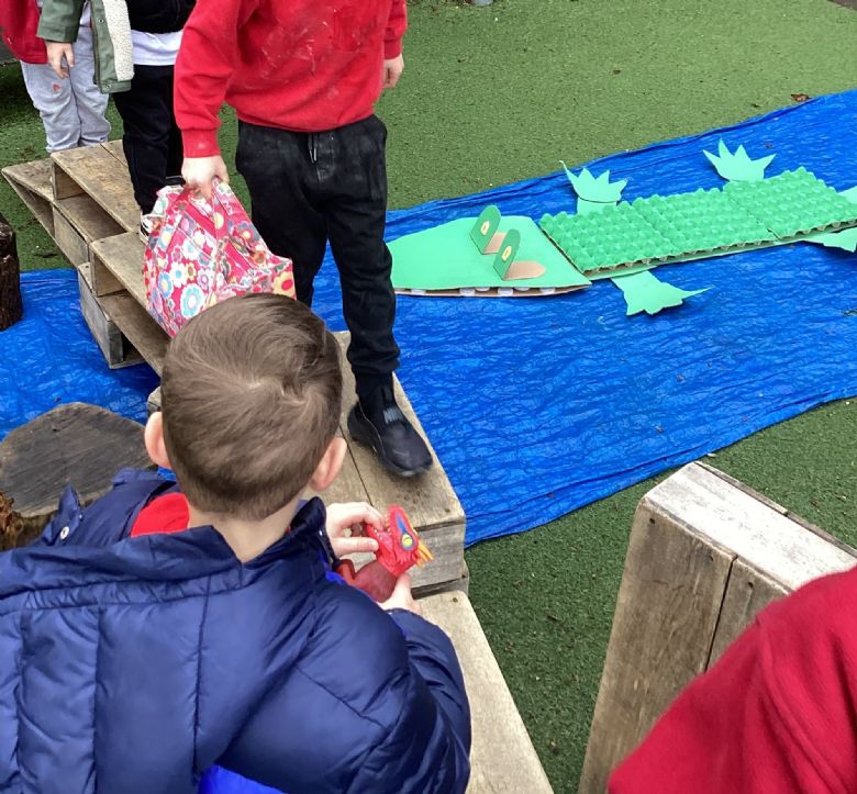 Our final scaled creatures were dinosaurs. We loved melting ice eggs, making dino footprints and making dinosaur paintings, but most of all, we loved trying to cross the river which was guarded by a prehistoric crocodile!!!
