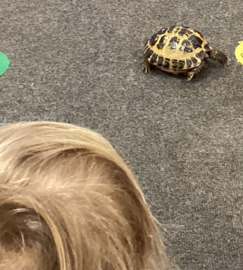 We met Mrs Crumplin's pet tortoise. We found out what it needs to live and be happy and how it is different from a turtle. We liked talking about our own pets too.